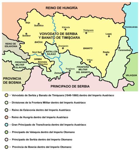 Keywords: Vojvodina mapa.png English Voivodeship of Serbia and Banat of Temeschwar 1849-1860 - Spanish language version Spanish Voivodato de Serbia y Banato de Timişoara 1849-1860 - en español 2006-12-20 own PANONIAN and FAR References Published references The Times History of Europe Times Books 2002 Sima M Ćirković Srbi među evropskim narodima Beograd 2004 Dr Tomislav Bogavac Nestajanje Srba Niš 1994 Dragomir Jankov Vojvodina - propadanje jednog regiona Novi Sad 2004 Istorijski atlas Zavod za udžbenike i nastavna sredstva - Zavod za kartografiju Geokarta Beograd 1999 Školski istorijski atlas Zavod za izdavanje udžbenika Socijalističke Republike Srbije Beograd 1970 Peter Rokai - Zoltan Đere - Tibor Pal - Aleksandar Kasaš Istorija Mađara Beograd 2002 Lazo M Kostić Srpska Vojvodina i njene manjine Novi Sad 1999 Drago Njegovan Prisajedinjenje Vojvodine Srbiji Novi Sad 2004 Čedomir Popov - Jelena Popov Autonomija Vojvodine - srpsko pitanje Sremski Karlovci 2000 Dr Dušan J Popović Srbi u Vojvodini knjiga 3 Novi Sad 1990 J H Šviker Politička istorija Srba u Ugarskoj Novi Sad - Beograd 1998 Sigfrid Kaper Srpski pokret u južnoj Ugarskoj 1848-1849 Beograd - Valjevo 1996 Dimitrije Boarov Politička istorija Vojvodine Novi Sad 2001 Dejan Mikavica Srpska Vojvodina u Habsburškoj monarhiji 1690-1920 Novi Sad 2005 Dr Milenko Palić Srbi u Mađarskoj - Ugarskoj do 1918 Novi Sad 1995 Drago Njegovan Srpska Vojvodina Enciklopedija Novog Sada knjiga 26 Novi Sad 2005 Istorija Vojvodine Enciklopedija Novog Sada sveska 5 Novi Sad 1996 Vladimir Ćorović Ilustrovana istorija Srba knjiga peta Beograd 2006 Vasilije Krestić Iz prošlosti Srema Bačke i Banata Beograd 2003 Slavko Gavrilović Srbi u Habsburškoj Monarhiji 1792-1849 Novi Sad 1994 Milan Tutorov Banatska rapsodija Novi Sad 2001 Jovan M Pejin Iz prošlosti Kikinde Kikinda 2000 Rodoljub Malenčić Miletić Novi Sad 1996 Čedomir Popov - Slavko Gavrilović Evropska revolucija i srpski pokret 1848-1849 Beograd - Novi Sad 1997 Internet references http //www sluzba vojvodina sr gov yu/SEKRETARIJATI-V/MANJINE/manjine-koliko-se-poznajemo/web-tekst/Brosura-ceo-tekst htm Bahovo_doba_-_Vojvodstvo_Srbija_i_Tamiški_Banat Bahovo doba - Vojvodstvo Srbija i Tamiški Banat in Serbian http //www thomasgraz net/glass/fj1titel htm Titles of Habsburg emperors http //www terra es/personal7/jqvaraderey/185915BK GIF Map http //terkepek adatbank transindex ro/kepek/netre/57 gif Map http //terkepek adatbank transindex ro/kepek/netre/256 gif Map http //www historyonmaps com/BWSamples/Magyarorszagadminsitrative html Map http //www lib utexas edu/maps/historical/balkans_1859 jpg Map Source and licence Traslation to Spanish by User FAR from the historic map in PD by en User PANONIAN en Image Vojvodina map png Later version was uploaded by User PANONIAN Voivodeship of Serbia and Banat of Temeschwar Habsburg Military Frontier Maps of the Habsburg period in the history of Serbia Maps of the history of Vojvodina Maps of the history of Banat Maps of the history of Bačka Maps of the history of Syrmia Maps of the Austrian Empire Maps in Spanish |