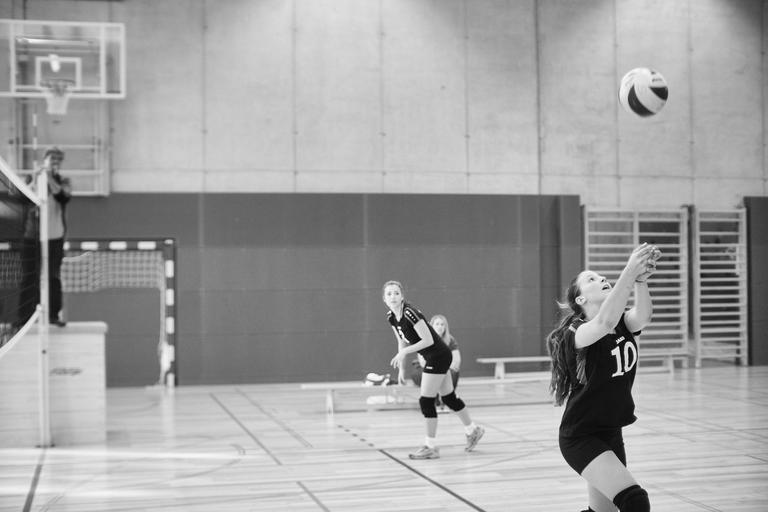 Keywords: volleyball sport ball play competition young playing field ball sports volley team sport fairness fitness together sporty hall active exercise sports hall team movement championship team sports train training volleyball field volleyball net athlete network black and white black white b w