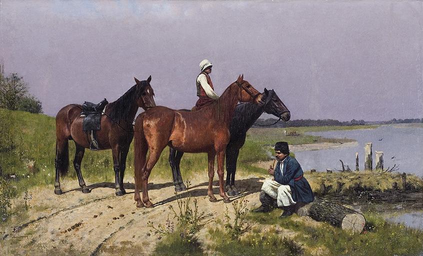 Keywords: Volodymy Los 1880.jpg en Volodymyr Los At the river crossing ar 1880 oil canvas http //www altius com pl/index php id 1 Volodymyr_Los Slavuta- 1888 München 1880 Ukraine in art Volodymyr Los Paintings of men with horses PD-old-70-1923