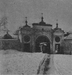 Keywords: Vologda - Gorny monastery - Gates.jpg Cultural Heritage Russia 3500015000 Gates of Gorny monastery in Vologda Во ота Го не-Успенского женского монасты я в Вологде book scan «Вологда в её ста ине» 1914 Г К Лукомский 59 13 54 N 39 52 16 E region RU_type landmark PD-RusEmpire Gorny monastery in Vologda
