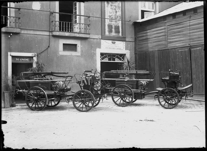 Keywords: Voluntários do Porto - carro de bombeiros (3).jpg Pormenor do pátio dos bombeiros voluntários com dois veículos de combate a incêndios ~ 1910 1919 /documents/301251/ q titulo 3A 28bombeiros 29+inicioProducao 3A 5B00000101+TO+19271231 5D+objetos 3Asim creator Foto+Guedes Info / Pic PD-old-auto-1923 1932 Images from the Arquivo Municipal do Porto Foto Guedes Porto in the 1910s History of firefighting in Portugal Files uploaded by User JotaCartas Firefighting equipment in Portugal Horse-drawn vehicles in Portugal Horse-drawn fire engines |