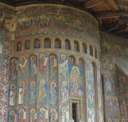 | Keywords: Voronet murals 2010 02.jpg Voroneţ Monastery Romania The church is one of the Painted churches of northern Moldavia listed in UNESCO's list of World Heritage sites own photo 14 d'Août 2010 Man vyi Own work all rights released Public domain Murals in Voroneț Murals and icons on the exterior of churches |