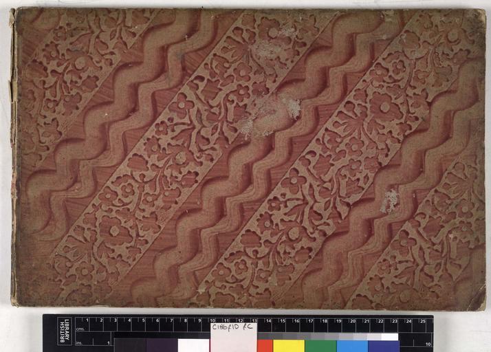| Keywords: Vorschriften zum schonschreiben fur die schulen in schlesien. - Upper cover (c186f10).jpg Style All over design Floral; Caption Upper cover; Colour Red; Edge Gilt exhibition history Decorative Technique Blocked in colours; Cover Material Paper paste Unspecified object history Text 1772; Breslau; Unspecified object type Cc-zero place of creation Binding Germany place of discovery Unspecified British Library image http //www bl uk/catalogues/bookbindings/LargeImage aspx RecordId 020-000008896 ImageId ImageId 44053 Copyright BL Vorschriften zum schonschreiben fur die schulen in schlesien Uploaded with GWToolset Vorschriften zum schonschreiben fur die schulen in schlesien - Upper cover c186f10 http //www webarchive org uk/bldatasets/bindings/9556_4 jpg Bookbinding 18th-century bookbinding British Library Bookbindings |