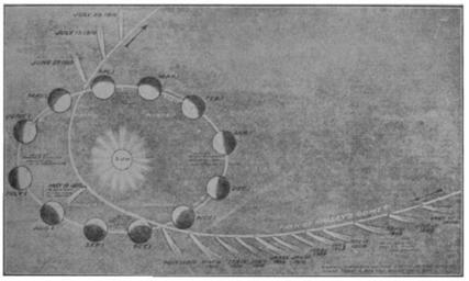 | Keywords: Voyage in Space page019.jpg en How the Earth and Halley's Comet move round the Sun Taken from Illustrated London News for Sept 25 1909 A Voyage in Spacehttps //archive org/details/voyageinspacecou00turnrich Herbert Hall Turner 1913 1930 A Voyage in Space Orbits of comets Earth's orbit |