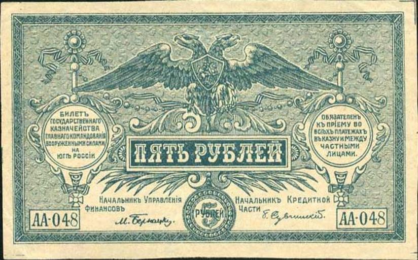Keywords: VSUR 5 Rubles-1919 averse.jpg 5 ублей 1919 Аве с jpg http //www fox-notes ru/img_rus/k6_3_denikin htm 1919 Казначейство ВСЮР 1919 currency Original upload log ru wikipedia ftcg page ru wikipedia VSUR_5_Rubles-1919_averse jpg wikitable - 19 22 25 February 2011 628 × 390 81 106 bytes DP28 w ru <nowiki> Изоб ажение Описание Деникинки 5 ублей 1919 Аве с jpg Источник http //www fox-notes ru/img_rus/k6_3_denikin htm В емя создания 1919 Авто </nowiki> Banknotes of the Armed Forces of South Russia Banknotes of Russia 1919 Banknotes with a face value of 5 Blue banknotes |