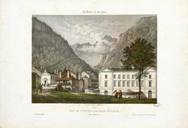 | Keywords: Vue de l'entrée des Eaux-Chaudes (Basses-Pyrénées) - Fonds Ancely - B315556101 A MERCEREAU 7 065.jpg Impression en 3 coul par Frick frères à Paris Fait partie d'un ensemble de recueils de lithographies de Mercereau composés de lithographies provenant de La France de nos jours vaste suite publiée par livraisons de 1853 à 1876 et comprenant 475 planches en deux tirages l'un à deux teintes noir et bistre l'autre en couleurs Les libraires ont réuni ces planches en albums de composition variable quant au nombre de planches et aux dessinateurs Asselineau Mercereau Maurice Deroy etc Un titre Les Pyrénées par Ch Mercereau; Bagnères-de-Luchon par Ch Mercereau était frappé sur le plat supérieur de la reliure de l'album ainsi que le nom du Libraire pour lequel il était réalisé La plupart des recueils de ces planches pyrénéennes portent le nom de Sajous libraire à Bagnères-de-Luchon Pl 1 à 18 numérotées de 370 à 386 Pl 374 pl 5 et 6 en double -- Pl 19 20 et 21 numérotées respectivement 407 415 et 418 Ces trois pl ont été dessinées et lithographiées par Asselineau -- Pl 22 23 et 24 numérotées 438 439 et 440 -- Pl 22 lith par Aubrun -- Pl 25 numérotée 441 -- Pl 26 à 40 numérotées de 327 à 341 -- Pl 41 à 46 numérotées de 363 à 368 -- Pl 47 numérotée 369 -- Pl 48 num 292 -- Pl 49 et 50 num 264 et 265 -- Pl 51 et 52 num 268 et 269 -- Pl 53 à 55 num de 293 à 295 -- Pl 56 num 300 -- Pl 57 à 59 num de 307 à 309 -- Pl 60 à 70 num de 316 à 326 -- Pl 71 num 63 dessin et lith d'Asselineau imprimerie Destouches -- Pl 72 et 73 num 87 et 88 dessin et lith d'Asselineau imprimerie Destouches -- Pl 74 num 124 signée Lebreton éditée chez Lalonde à Paris et imprimée chez Becquet frères à Paris -- Pl 75 num 161 dessin et litho d'Asselineau imprimerie Destouches --Pl 76 à 78 num de 207 à 209 -- Pl 79 à 81 num de 211 à 213 -- Pl 82 num 220 dessin et lith de Maurice imprimerie Destouches -- Pl 83 à 86 num de 226 à 229 -- Pl 87 et 88 num 234 et 235 -- Pl 89 à 91 num de 273 à 275 -- Pl 92 et 93 num 290 et 291 Pièces jointes 6 pl sépia dont certaines sont des doubles du recueil de Mercereau Les cinq premières planches sont numérotées respectivement 318 321 324 331 386 La dernière planche n'est pas extraite de La France de nos jours mais de L'Espagne pittoresque et monumentale Ces six planches sont signées Mercereau éditées chez Sinnet et imprimées chez Frick frères Ancely René 1876 - 1966 Possesseur fre public domain domaine public B315556101_A_MERCEREAU_7_065 jpg image/jpeg 1 f de pl lithogr ; 31 5 cm oblong Frick frères Imprimeur Sinnet F Éditeur http //numerique bibliotheque toulouse fr/collect/general/index/assoc//ark /74899/B315556101_A_MERCEREAU_7_065 dir/B315556101_A_MERCEREAU_7_065 jpg Bibliothèque municipale de Toulouse A-MERCEREAU 7-65 Creator Charles Mercereau http //catalogues toulouse fr/web2/tramp2 exe/do_keyword_search/log_in setting_key BMT1 servers 1home query p001689 St Jean-de-Luz intérieur de l'Eglise St Jean-de-Luz le Château de l'Infante Biarritz Vue générale prise du Phare Château de Mauvesin près Bagnères-de-Bigorre Hautes Pyrénées Bagnères de Bigorre Hautes Pyrénées - Intérieur de l'Eglise des Carmes en couleurs Bagnères de Bigorre Hautes Pyrénées - Intérieur de l'Eglise des Carmes Bagnères-de-Bigorre - Eglise et couvent des Carmes Bagnères-de-Bigorre Hautes-Pyrénées - Tour des Jacobins Cascade et Pont de Magenta Vallée de l'Esponne Hautes Pyrénées Cascade de Trémes-Aïgues Vallée de Grip Hautes Pyrénées St Sauveur Hautes Pyrénées - Le Pont Napoléon Bayonne - Eglise St André Arreau et la Vallée d'Aure Hautes Pyrénées - Vue prise au dessus de la route du Col d'Aspin Auch - Vue prise sur les bords du Gers Auch - Vue de la Cathédrale Auch - Intérieur de la Cathédrale Bagnères-de-Bigorre - Vue Générale prise de la Fontaine ferrugineuse Eaux-Bonnes Basses-Pyrénées - L'établissement Thermal et la Chapelle Nantes - Vue de l'Eglise Ste Croix Le Croisic - Plage des Baigneurs et Etablissement de Bains Le Folgoët - Vue de l'Eglise Brèche de Roland prise de Gèdres Hautes Pyrénées Eglise des Templiers à Luz Chapelle du couvent de Pouëlahun i e Pouey Lahun - Vallée d'Azun Hautes Pyrénées Le Pont de Scia - Route de Luz à Gavarnie Hautes-Pyrénées Vue de l'établissement de la Raillière près Cauterets Hautes-Pyrénées Vue générale de Cauterets prise du Mamelon Vert Hautes-Pyrénées Vue du Fort de Lourdes Hautes-Pyrénées Vue d'Argelès-de-Bigorre Hautes-Pyrénées Vue de St Sauveur Hautes-Pyrénées Le Pas de l'Echelle Route de Gavarnie Hautes-Pyrénées Fond de la Vallée d'Argelès prise de la terrasse de St Savin Hautes-Pyrénées Place Grammont à Pau Basses-Pyrénées Vue générale des Eaux-Bonnes Basses-Pyrénées Barèges et la Vallée du Bastan Hautes-Pyrénées Chute supérieure du Pont d'Espagne Hautes-Pyrénées La grotte miraculeuse à Lourdes Hautes-Pyrénées Eglise de Bétharram et Pont de Lestelle Basses Pyrénées Cascade du Cerizet Près Cauterets Hautes-Pyrénées Pic du Midi d'Ossau 2885m Basses Pyrénées - Vue prise du 3e plateau de Bious-Artigues Toulouse - Cloître du Musée et Clocher des Augustins Pau - Vue prise de la terrasse du Château Pau - Vue du Château prise du Parc Toulouse - Cloître du Musée Galerie du Moyen-Age Toulouse - La maison de pierre fragment de la façade Toulouse - Intérieur de St Sernin St Jean-de-Luz Fort du Socoa Toulouse - Vue du Capitole Bordeaux Vue de la Porte du Caillau i e Cailhau Bordeaux Porte de la grosse Cloche Bordeaux Vue des Quinconces Bordeaux - Vue de la Tour et de l'Eglise de St Michel Toulouse - Vue du Pont de pierre prise du Quai de Brienne Toulouse - Abside de l'Eglise de St Sernin de l'an 1097 Toulouse - Choeur de la Cathédrale St Etienne Rouen - Hôtel de Bourgtheroulde Biarritz - Vue des Bains Napoléon et du Casino Biarritz - Vue des Bains du Port Vieux Biarritz - Vue de l'Entrée de 
