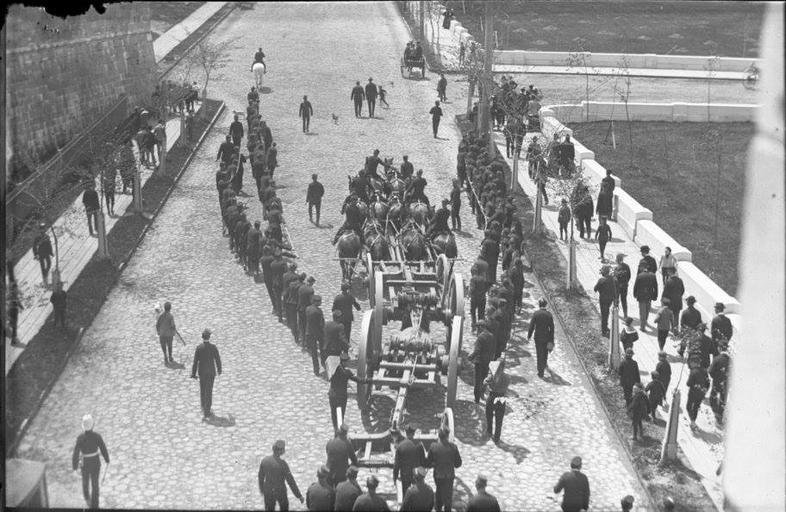 | Keywords: Vue en plongee prise de la porte Saint-Louis sur un transport de canon Palliser de 15 tonnes. La Grande Allee Est vers 1895.jpg fr Vue en plongée prise de la porte Saint-Louis sur un transport de canon Palliser de 15 tonnes La Grande Allée Est vers 1895 1895 https //www facebook com/157594394301478/photos/a 158075344253383 34373 157594394301478/976132729114303/ type 3 theater facebook com - https //scontent-ord1-1 xx fbcdn net/hphotos-xpt1/v/t1 0-9/12348039_976132729114303_1683565164002718765_n jpg oh 1f2f848c18cc3f4ecaa12632eac98c50 oe 56DC2798 scontent-ord1-1 xx fbcdn net BAnQ Fonds Fred C Würtele P546 D5 P8 other versions 46 8094456 -71 211287 PD-old-70-1923 Grande Allée Quebec City Saint-Louis gate Quebec City in the 1890s Photographs by Fred C Würtele Uploaded with UploadWizard |