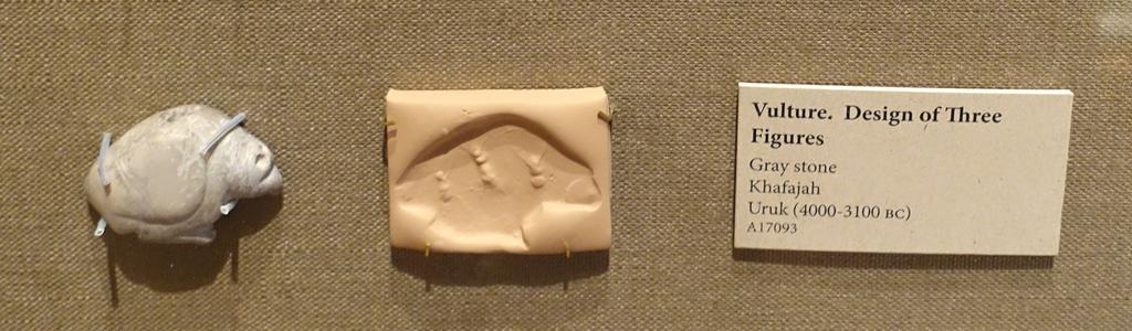 | Keywords: Vulture stamp seal with Design of Three Figures, Khafajah, Uruk, 4000-3100 BC, gray stone - Oriental Institute Museum, University of Chicago - DSC07205-001.JPG en Exhibit in the Oriental Institute Museum University of Chicago Chicago Illinois USA This work is old enough so that it is in the public domain Photography was permitted in the museum without restriction 2014-08-22 14 49 08 own Daderot other versions cc-zero Uruk Period stamp seals in the Oriental Institute Museum Uploaded with UploadWizard |