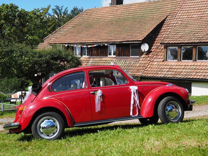 Keywords: vw beetle bridal car auto oldtimer vw vehicle classic old volkswagen red wedding car bridal cars loop beetle cabriolet convertible car body shape pkw open lights spotlight blinker bumper wheel rim