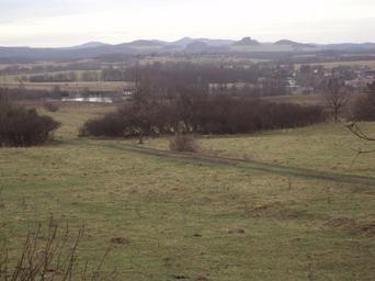 Keywords: Vyhlídka Zak 2.JPG cs Pohled z paty Kamenického kopce směrem na jih k Provodínským kamenům own Zákupák 2013-01-31 Gagarinova Zákupy Cvikovská pahorkatina
