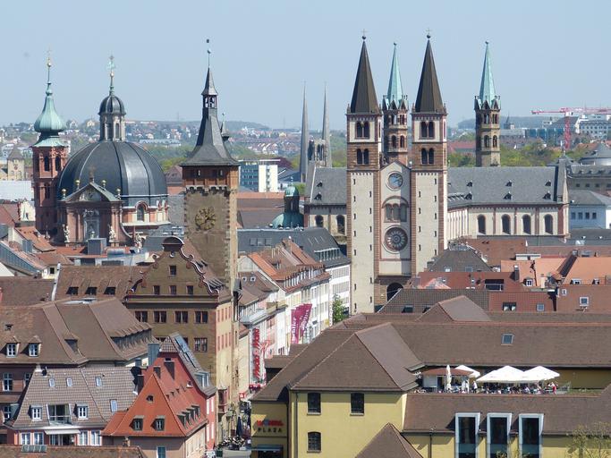 Keywords: würzburg bavaria swiss francs romantic germany outlook view architecture city historically building churches old town landmark dom tower town hall places of interest