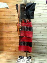 | Keywords: Wa woman brocade clothes - Yunnan Nationalities Museum - DSC04297.JPG Wa woman brocade clothes Clothing exhibited in the Yunnan Nationalities Museum Kunming Yunnan China I took this photograph 2011-08-13 02 25 25 Daderot Public domain Clothing in the Yunnan Nationalities Museum Wa clothing |