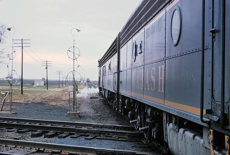| Keywords: vehicle train railroad outdoor Photo 2. Train 1, The Wabash Cannonball, facing Train 4, The Wabash Cannonball, on the same track. Note the crossover is hidden in steam. The diamonds are with the IC mainline. A Roger Puta Photograph Photo 2. Train 1, The Wabash Cannonball, facing Train 4, The Wabash Cannonball, on the same track. Note the crossover is hidden in steam. The diamonds are with the IC mainline. A Roger Puta Photograph Photo 2. Train 1, The Wabash Cannonball, facing Train 4, The Wabash Cannonball, on the same track. Note the crossover is hidden in steam. The diamonds are with the IC mainline. A Roger Puta Photograph Wabash Cannonballs Meet at Tolono, Illinois, October 28, 1962 (23887530792).jpg en Photo 2 Train 1 The Wabash Cannonball facing Train 4 The Wabash Cannonball on the same track Note the crossover is hidden in steam The diamonds are with the IC mainline <br> A Roger Puta Photograph 2015-12-26 20 24 34 https //www flickr com/people/129679309 N05 railfan 44 https //www flickr com/photos/129679309 N05/23887530792/ User Fæ/Flickr API Puta's NS and Roads Absorbed into NS Photos train railroad Chicago Rails North American Railfanning railfans Illinois Missouri and Indiana Railroads EMD Midwest Railroads American Rails 1 000 000 TRAINS Steel Rails Across North America North American Railroads E-Units and F-Units Railroad Photographer USA/Canada U S Railfan Pictures Railroad Picture Hall of Fame Streamliners Classic EMD Power EMD Gallery Railroading in Illinois Rural Railfanning Chicago Area Railfans Railroad Sightings Railroad Photography Junction Mel Finzer RogerPuta Photographs by Roger Puta Photos uploaded from Flickr by Fæ using a script 1962 in rail transport in the United States Wabash Railroad |