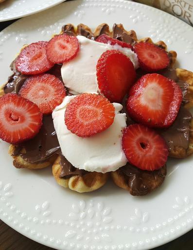 Keywords: waffle food icecream homemade strawberry chocolate desert
