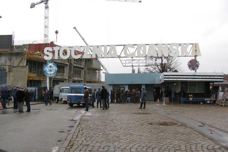 Keywords: Wałęsa filmmaking (2).JPG en Wałęsa the movie set in Gdańsk own Artur Andrzej 2012-01-12 Wałęsa Historic gate of Gdańsk Shipyard ZSD Nysa 522 FSC Żuk A-11 B Cc-zero