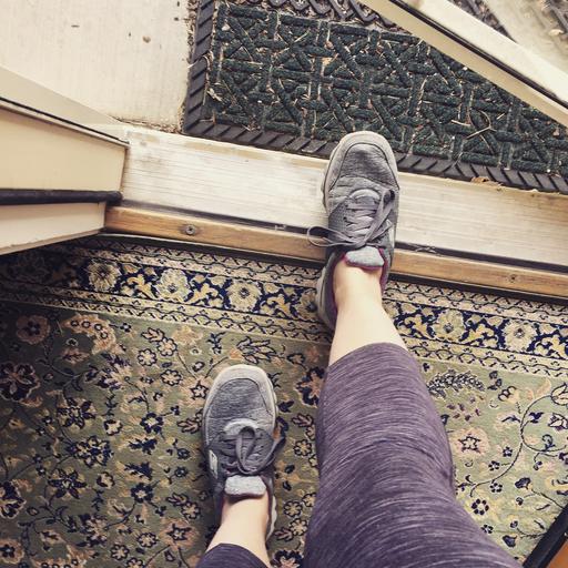 Keywords: walking door leaving entrance doorway walk tennis shoes working out