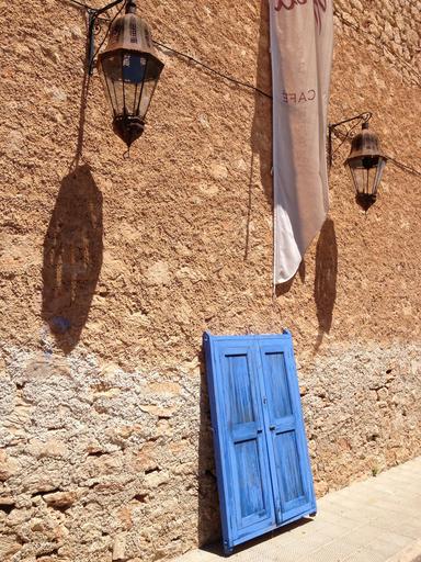 Keywords: wall wall lamps blue door spain majorca old building hanging lamps