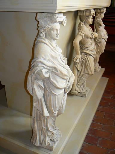 Keywords: Walpurgis-Sarkophag 02.JPG en Walpurgis-Sarkophag wood 1997 with Sandstein-Karyatiden 1586 in St Magnus Kirche in Esens/Germany own Gerardus 2009-04-16 St Magnus Esens