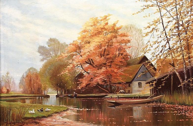 | Keywords: Walter Moras - Spreewald-Idyll mit Kanal und Haus, Personen, Enten und Booten.jpg Artwork H Mohrmann Pseudonym von Walter Moras Variation eines Werks von Walter Moras Creator Walter Moras oil canvas cm 50 70 object history credit line accession number http //www lot-tissimo com/de/i/2610089 similar to 200px 200px 200px PD-old-auto 1925 Walter Moras Autumn landscape paintings Spreewald in art | ||||