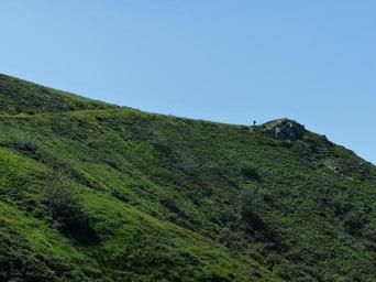 Keywords: wanderer backpackers backpacker day trip human person alone on the go hike mountains mountain grassy slope trail maritime alps gta grande traversata delle alpi long distance trail alpine monte pianard