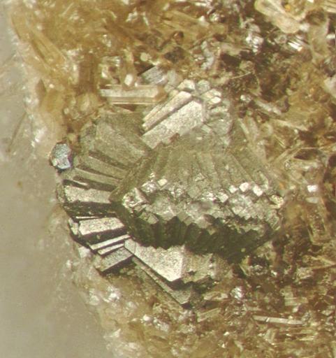 | Keywords: Wardite, Childrenite-Eosphorite series-321742.jpg The diameter of the group is ~ 0 9 mm The only sulfides listed for Rapid Creek are pyrite and chalcopyrite I don ™t think this is pyrite unless it ™s a pseudomorph so it must be chalcopyrite QED The little brownish prisms are childrenite or eosphorite All these xls sit on the wardite shown in File Wardite _Childrenite-Eosphorite_series-199243 jpg Wardit Fundort Rapid Creek Bergbaugebiet Dawson Yukon Territorium Kanada Beschreibung Der Durchmesser der Gruppe beträgt ~ 0 9 mm Die einzigen für den Fundort Rapid Creek registrierten Sulfide sind Pyrit und Chalkopyrit Ich denke nicht dass es Pyrit ist außer es wäre eine Pseudomorphose Es muss also Chalkopyrit sein Die kleinen bräunlichen Prismen bestehen aus Childrenit oder Eosphorit All diese Kristalle sitzen auf einem Warditkristall siehe File Wardite _Childrenite-Eosphorite_series-199243 jpg http //www mindat org/photo-321742 html 2010-07-18 http //www mindat org/user-11235 html 0 Modris Baum <gallery> File Wardite _Childrenite-Eosphorite_series-199243 jpg File Wardite _Childrenite-Eosphorite_series-321741 jpg </gallery> Modris Baum Wardite Files by Modris Baum from mindat |