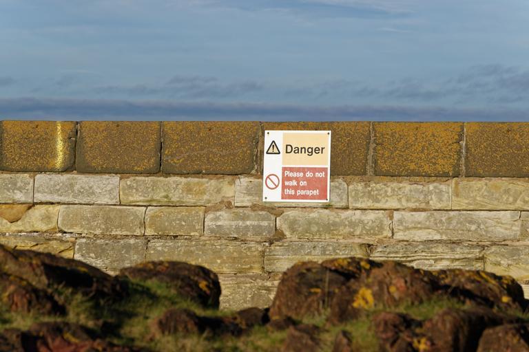 Keywords: warning sign danger sign warning caution yellow safety alert information wall stone protection attention