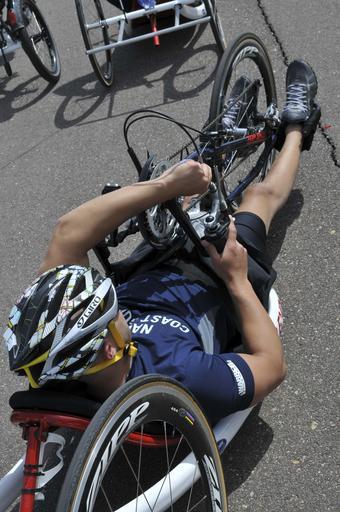 | Keywords: Warrior Games 2013 Cycling Practice 130506-N-DT940-009.jpg en Retired Master-at-Arms 3rd Class Nathan DeWalt of York Pa adjusts the gears on his bike at the Air Force Academy here in preparation for the 2013 Wounded Warrior Games The Warrior Games includes competitions in archery cycling seated volleyball shooting swimming track and field and wheelchair basketball The goal of the Warrior Games is not necessarily to identify the most skilled athletes but rather to demonstrate the incredible potential of wounded warriors through competitive sports More than 200 wounded ill or injured service members from the U S and U K armed forces are scheduled to compete in the Paralympics-style competition May 11-16 U S Navy photo by Mass Communication Specialist 1st Class Erica R Gardner/Released 2013-05-06 Petty Officer 1st Class Erica R Gardner https //www dvidshub net/image/929523 130506-N-DT940-009 2013-05-11 19 13 COLORADO SPRINGS CO US PD-USGov-Military-Navy 2013 Warrior Games Images from DoD uploaded by Fæ |
