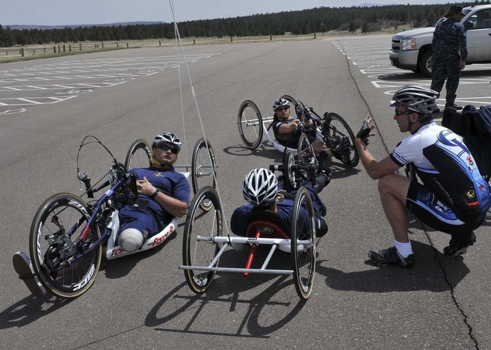 | Keywords: Warrior Games 2013 Cycling Practice 130506-N-DT940-004.jpg en Team Navy/Coast Guard cyclists listen as their coach provides them with suggestions to make the ride easier in preparation for the 2013 Wounded Warrior Games The Warrior Games includes competitions in archery cycling seated volleyball shooting swimming track and field and wheelchair basketball The goal of the Warrior Games is not necessarily to identify the most skilled athletes but rather to demonstrate the incredible potential of wounded warriors through competitive sports More than 200 wounded ill or injured service members from the U S and U K armed forces are scheduled to compete in the Paralympics-style competition May 11-16 U S Navy photo by Mass Communication Specialist 1st Class Erica R Gardner/Released <br>Unit Navy Wounded Warrior -- Safe Harbor 2013-05-06 Petty Officer 1st Class Erica R Gardner https //www dvidshub net/image/929521/warrior-games-2013-cycling-practice 130506-N-DT940-004 2013-05-11 19 26 COLORADO SPRINGS CO US PD-USGov-Military-Navy Warrior Games Images from DoD uploaded by Fæ |