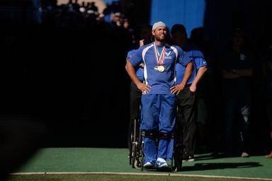 Keywords: Warrior Games athletes honored at Navy-Air Force football game 141004-D-DB155-033.jpg en Air Force Capt Mitch Kieffer watches football from the Air Force Academy field entrance during a game with Navy in Colorado Springs Colo Oct 4 2014 Kieffer won the Ultimate Champion award for the second year in a row DoD News photo by EJ Hersom 2014-10-04 EJ Hersom https //www dvidshub net/image/1598081 141004-D-DB155-033 2014-10-04 22 28 COLORADO SPRINGS CO US PD-USGov 2014 Warrior Games Images from DoD uploaded by Fæ |