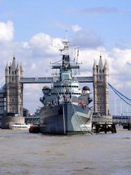 Keywords: warship cruiser water thames london bridges