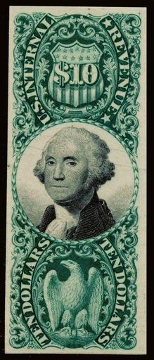 | Keywords: Washington revenue $10 1872 issue R149P4.jpg  U S Revenue stamp 10 issue of 1872 Scotts R149P4 <br>This third issue stamp is similar to the second issue with the following changes Denomination is ten dollars instead of five and the lower portion depicts an Eagle instead of a Shield Issued in 1872 United States Government; Dept Internal Revenue Government commissioned printing by Butler Carpenter of Philadelphia; Restoration and imaging by Gwillhickers other versions thumb 164px left Second issue stamp with similar design PD-USGov Uploaded with UploadWizard Revenue stamps of the U S Internal Revenue Service Stamps of the United States 1870-1880 George Washington on stamps Revenue stamps of the U S Internal Revenue Service; 1871 third issue of U S revenue stamps 10 denomination 06 31 15 October 2014 UTC Washington revenue 10 1872 issue R149P4 jpg  |