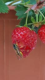 Keywords: wasp insect strawberry fruit nature animal sting close