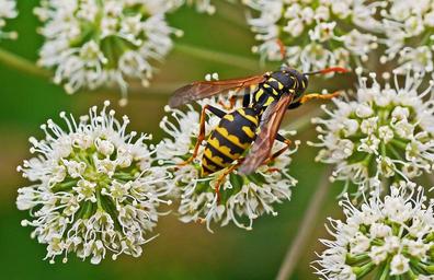 Keywords: wasp wild flowers threads stamp stamens leek-like close nature summer bloom inflorescence german wasp