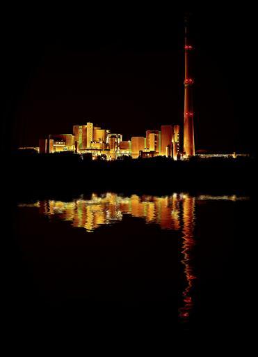Keywords: waste incineration incinerator chimney exhaust industry fireplace night photograph night kamp athens north rhine westphalia ruhr area reflection rippling water digital creation building heating plant heating station