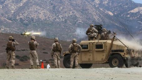 Keywords: Watch and Learn (21001699404).jpg Marines with the 13th Marine Expeditionary Unit practiced employing hunter-killer techniques with multiple weapons platforms during sustainment training on Aug 21 2015 The unit composed of heavy machine gunners and anti-tank missilemen is used to combat hardened targets as well as provide security U S Marine Corps photo by Sgt Paris Capers /Released https //www flickr com/photos/marine_corps/21001699404/ Watch and Learn 2015-09-22 08 27 https //www flickr com/people/40927340 N03 Marines from Arlington VA United States PD-USGov United States Marine Corps Official Page https //flickr com/photos/40927340 N03/21001699404 2016-09-03 21 31 12 United States Government Work 13th Marine Expeditionary Unit BGM-71 TOW Javelins