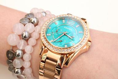 Keywords: watch timepiece fossil bracelet pearls blue turquoise time