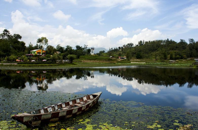 Keywords: water boat clouds reflections nature landscape scenery cloud sky reflection blue lake