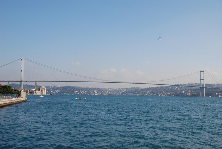 Keywords: water bridge sea river sky fatih sultan mehmet bridge turkey istanbul scenic horizon skyline