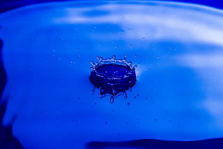 Keywords: water drop still splash blue liquid droplet wave fluid