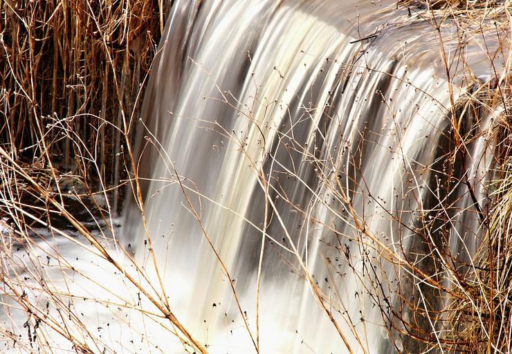 Keywords: water flowing dry grass yellow