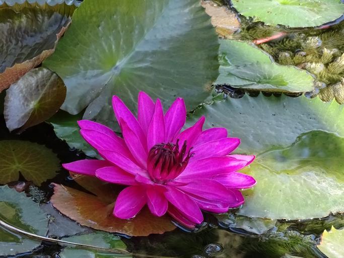Keywords: water lily pink nature flower bloom color leaves blossom fuchsia