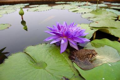 Keywords: water lily purple blossomed blossom bloom pond aquatic plant flower water nature bloom nuphar violet water flower teichplanze lake rose leaf green plant frog toad