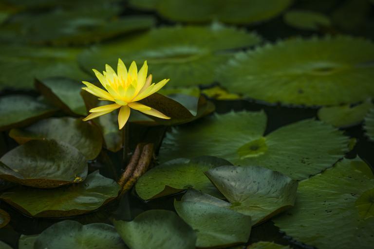 Keywords: water lily scene flower pond petal bloom yellow vibrant