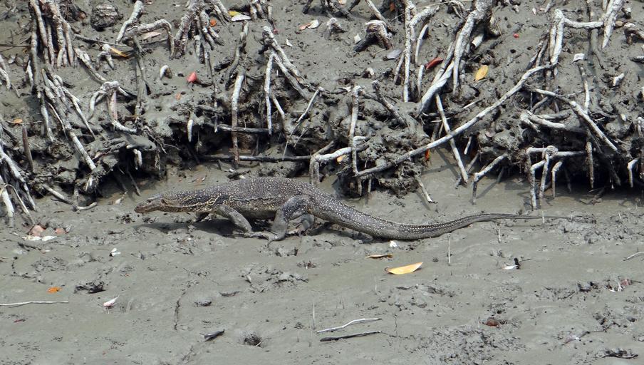 Keywords: water monitor lizard varanus salvator reptile wild sundarbans swamp mangroves national park unesco heritage ramsar site india