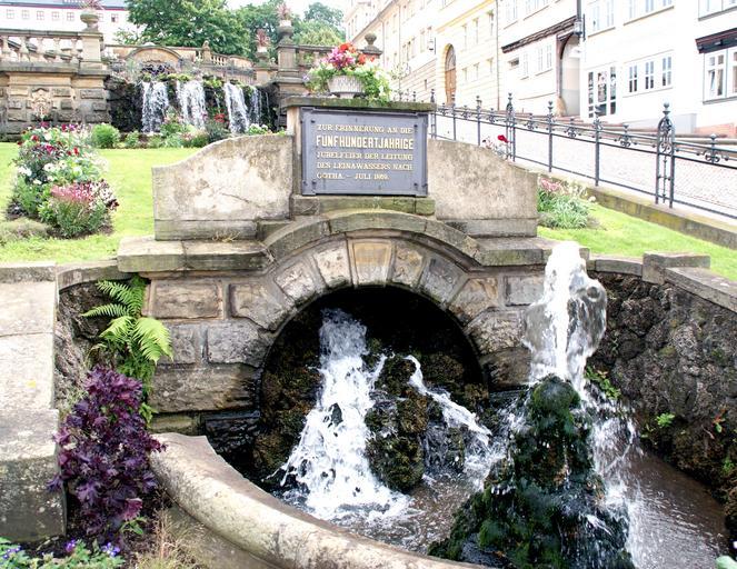 Keywords: water monument waterfall old water feature memorial plaque gotha city germany