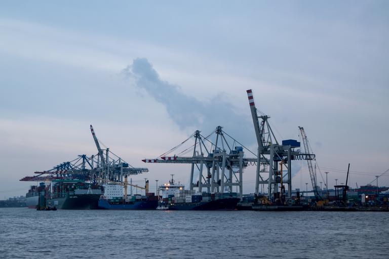 Keywords: water port hamburg cargo elbe boats ship crane