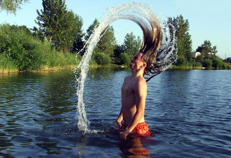 Keywords: water radius bath mood hair wet splash swimming river outdoor movement moment