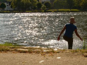 Keywords: water river paddling wet play fun summer sunny day cooling refreshment