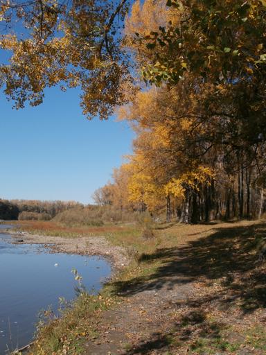 Keywords: water small river river autumn trees nature stroll reflection in the water quiet river landscape autumn on the river autumn beach leaves yellow leaves autumn day altai