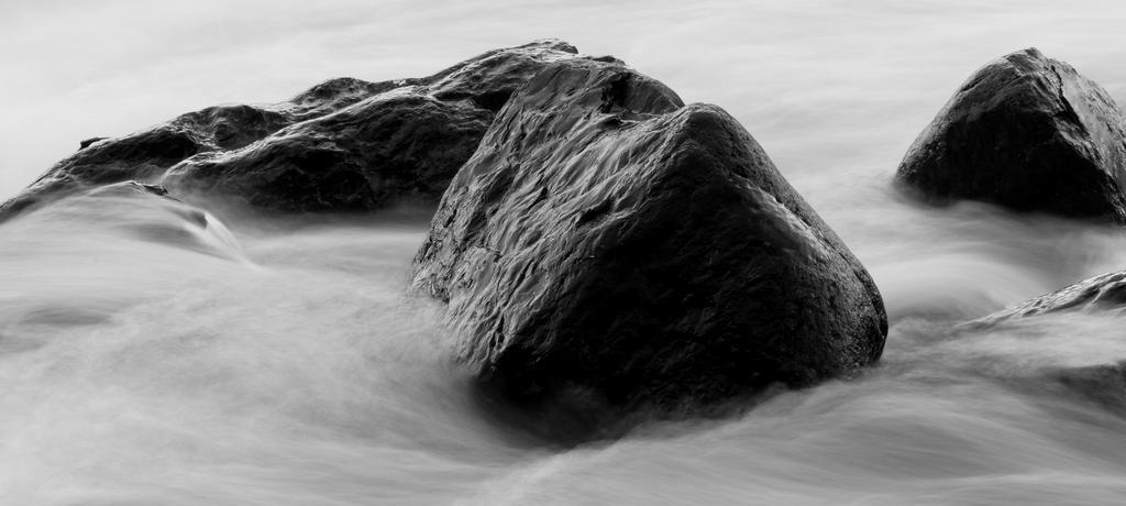 Keywords: water stone river long exposure nature black white